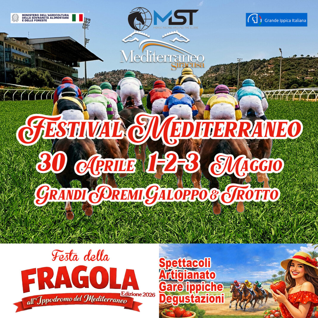 Siracusa. Torna uno degli appuntamenti più attesi della primavera siciliana: il Festival Mediterraneo, pronto ad accogliere migliaia di visitatori nella suggestiva cornice dell’Ippodromo del Mediterraneo. Dal 30 aprile al 3 maggio, la struttura siracusana diventerà il cuore pulsante di una manifestazione capace di unire spettacolo, enogastronomia, intrattenimento e grande sport. Un evento che negli anni ha superato anche gli 80 mila visitatori, confermandosi come punto di riferimento per pubblico locale e turistico. Il programma si sviluppa in quattro giornate ricche di appuntamenti: dalla celebre Festa della Fragola – simbolo della manifestazione – ai Gran Premi di galoppo del 1° maggio, passando per spettacoli, musica dal vivo,...